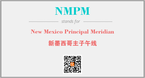 英文缩略词“NMPM”经常作为“New Mexico Principal Meridian”的英文缩写来使用,中文表示:“新墨西哥主子午线”。本文将详细介绍英文缩写词NMPM所代表英文单词,其对应的中文拼音、详细解释以及在英语中的流行度。此外,还有关于缩略词NMPM的分类、应用领域及相关应用示例等。