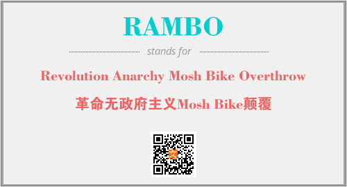 以上为Revolution Anarchy Mosh Bike Overthrow英文缩略词RAMBO的中文解释,以及该英文缩写在英语的流行度、分类和应用领域方面的信息。