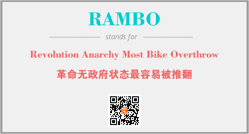 以上为Revolution Anarchy Most Bike Overthrow英文缩略词RAMBO的中文解释,以及该英文缩写在英语的流行度、分类和应用领域方面的信息。
