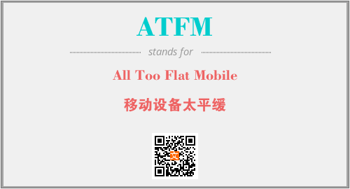 上述内容是“All Too Flat Mobile”作为“ATFM”的缩写,解释为“移动设备太平缓”时的信息,以及英文缩略词ATFM所代表的英文单词,其对应的中文拼音、详细解释以及在英文中的流行度和相关分类、应用领域及应用示例等。