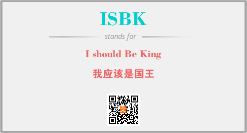 上述内容是“I should Be King”作为“ISBK”的缩写,解释为“我应该是国王”时的信息,以及英文缩略词ISBK所代表的英文单词,其对应的中文拼音、详细解释以及在英文中的流行度和相关分类、应用领域及应用示例等。
