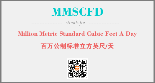 英文缩略词“MMSCFD”经常作为“Million Metric Standard Cubic Feet A Day”的英文缩写来使用,中文表示:“百万公制标准立方英尺/天”。本文将详细介绍英文缩写词MMSCFD所代表英文单词,其对应的中文拼音、详细解释以及在英语中的流行度。此外,还有关于缩略词MMSCFD的分类、应用领域及相关应用示例等。