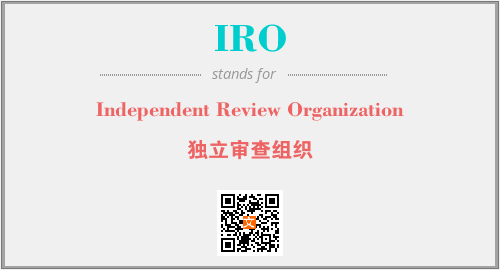 英文缩略词“IRO”经常作为“Independent Review Organization”的英文缩写来使用,中文表示:“独立审查组织”。本文将详细介绍英文缩写词IRO所代表英文单词,其对应的中文拼音、详细解释以及在英语中的流行度。此外,还有关于缩略词IRO的分类、应用领域及相关应用示例等。