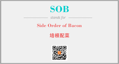 上述内容是“Side Order of Bacon”作为“SOB”的缩写,解释为“培根配菜”时的信息,以及英文缩略词SOB所代表的英文单词,其对应的中文拼音、详细解释以及在英文中的流行度和相关分类、应用领域及应用示例等。