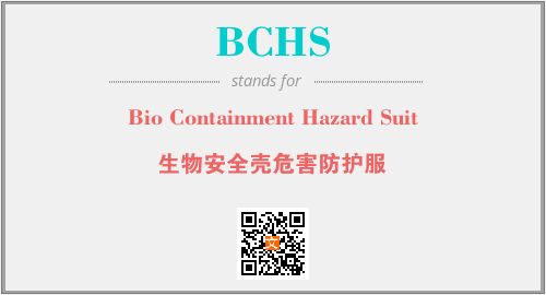 英文缩略词“BCHS”经常作为“Bio Containment Hazard Suit”的英文缩写来使用,中文表示:“生物安全壳危害防护服”。本文将详细介绍英文缩写词BCHS所代表英文单词,其对应的中文拼音、详细解释以及在英语中的流行度。此外,还有关于缩略词BCHS的分类、应用领域及相关应用示例等。