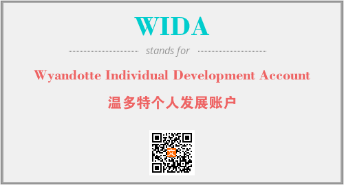 上述内容是“Wyandotte Individual Development Account”作为“WIDA”的缩写,解释为“温多特个人发展账户”时的信息,以及英文缩略词WIDA所代表的英文单词,其对应的中文拼音、详细解释以及在英文中的流行度和相关分类、应用领域及应用示例等。