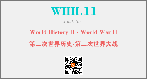 上述内容是“World History II - World War II”作为“WHII.11”的缩写,解释为“第二次世界历史-第二次世界大战”时的信息,以及英文缩略词WHII.11所代表的英文单词,其对应的中文拼音、详细解释以及在英文中的流行度和相关分类、应用领域及应用示例等。