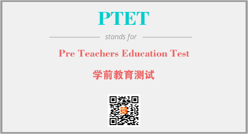 英文缩略词“PTET”经常作为“Pre Teachers Education Test”的英文缩写来使用,中文表示:“学前教育测试”。本文将详细介绍英文缩写词PTET所代表英文单词,其对应的中文拼音、详细解释以及在英语中的流行度。此外,还有关于缩略词PTET的分类、应用领域及相关应用示例等。