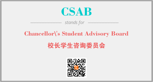 英文缩略词“CSAB”经常作为“Chancellor\'s Student Advisory Board”的英文缩写来使用,中文表示:“校长学生咨询委员会”。本文将详细介绍英文缩写词CSAB所代表英文单词,其对应的中文拼音、详细解释以及在英语中的流行度。此外,还有关于缩略词CSAB的分类、应用领域及相关应用示例等。