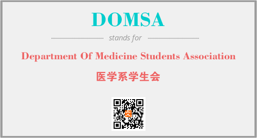 上述内容是“Department Of Medicine Students Association”作为“DOMSA”的缩写,解释为“医学系学生会”时的信息,以及英文缩略词DOMSA所代表的英文单词,其对应的中文拼音、详细解释以及在英文中的流行度和相关分类、应用领域及应用示例等。