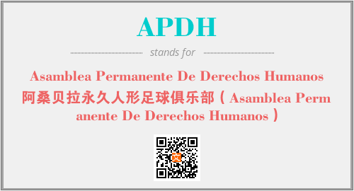 上述内容是“Asamblea Permanente De Derechos Humanos”作为“APDH”的缩写,解释为“阿桑贝拉永久人形足球俱乐部(Asamblea Permanente De Derechos Humanos)”时的信息,以及英文缩略词APDH所代表的英文单词,其对应的中文拼音、详细解释以及在英文中的流行度和相关分类、应用领域及应用示例等。
