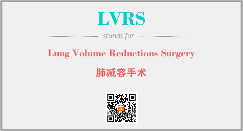 英文缩略词“LVRS”经常作为“Lung Volume Reductions Surgery”的英文缩写来使用,中文表示:“肺减容手术”。本文将详细介绍英文缩写词LVRS所代表英文单词,其对应的中文拼音、详细解释以及在英语中的流行度。此外,还有关于缩略词LVRS的分类、应用领域及相关应用示例等。