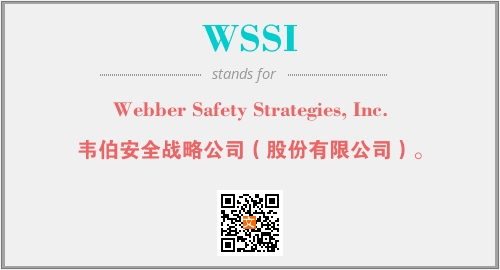 上述内容是“Webber Safety Strategies, Inc.”作为“WSSI”的缩写,解释为“韦伯安全战略公司(股份有限公司)。”时的信息,以及英文缩略词WSSI所代表的英文单词,其对应的中文拼音、详细解释以及在英文中的流行度和相关分类、应用领域及应用示例等。
