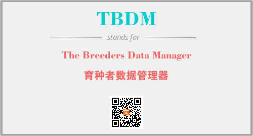 英文缩略词“TBDM”经常作为“The Breeders Data Manager”的英文缩写来使用,中文表示:“育种者数据管理器”。本文将详细介绍英文缩写词TBDM所代表英文单词,其对应的中文拼音、详细解释以及在英语中的流行度。此外,还有关于缩略词TBDM的分类、应用领域及相关应用示例等。