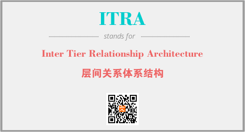 上述内容是“Inter Tier Relationship Architecture”作为“ITRA”的缩写,解释为“层间关系体系结构”时的信息,以及英文缩略词ITRA所代表的英文单词,其对应的中文拼音、详细解释以及在英文中的流行度和相关分类、应用领域及应用示例等。