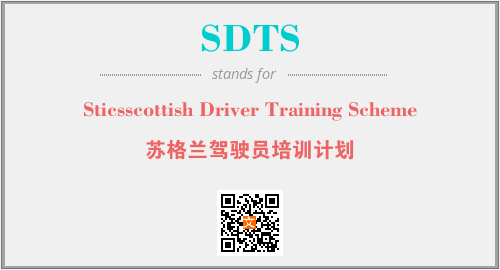 上述内容是“Sticsscottish Driver Training Scheme”作为“SDTS”的缩写,解释为“苏格兰驾驶员培训计划”时的信息,以及英文缩略词SDTS所代表的英文单词,其对应的中文拼音、详细解释以及在英文中的流行度和相关分类、应用领域及应用示例等。