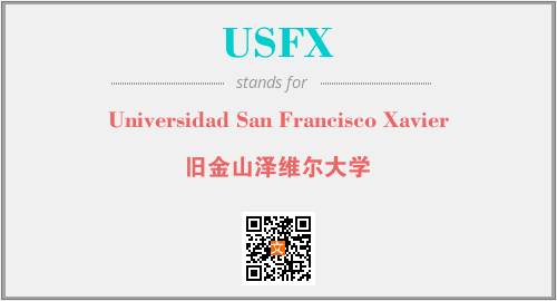 英文缩略词“USFX”经常作为“Universidad San Francisco Xavier”的英文缩写来使用,中文表示:“旧金山泽维尔大学”。本文将详细介绍英文缩写词USFX所代表英文单词,其对应的中文拼音、详细解释以及在英语中的流行度。此外,还有关于缩略词USFX的分类、应用领域及相关应用示例等。
