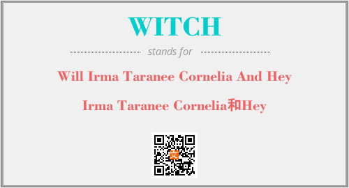 英文缩略词“WITCH”经常作为“Will Irma Taranee Cornelia And Hey”的英文缩写来使用,中文表示:“Irma Taranee Cornelia和Hey”。本文将详细介绍英文缩写词WITCH所代表英文单词,其对应的中文拼音、详细解释以及在英语中的流行度。此外,还有关于缩略词WITCH的分类、应用领域及相关应用示例等。