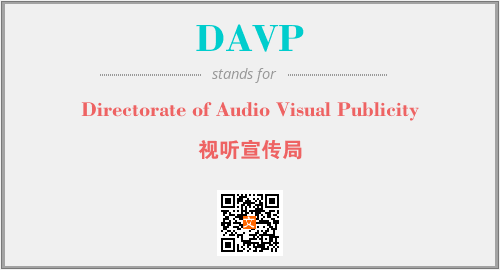 英文缩略词“DAVP”经常作为“Directorate of Audio Visual Publicity”的英文缩写来使用,中文表示:“视听宣传局”。本文将详细介绍英文缩写词DAVP所代表英文单词,其对应的中文拼音、详细解释以及在英语中的流行度。此外,还有关于缩略词DAVP的分类、应用领域及相关应用示例等。