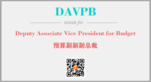上述内容是“Deputy Associate Vice President for Budget”作为“DAVPB”的缩写,解释为“预算副副副总裁”时的信息,以及英文缩略词DAVPB所代表的英文单词,其对应的中文拼音、详细解释以及在英文中的流行度和相关分类、应用领域及应用示例等。