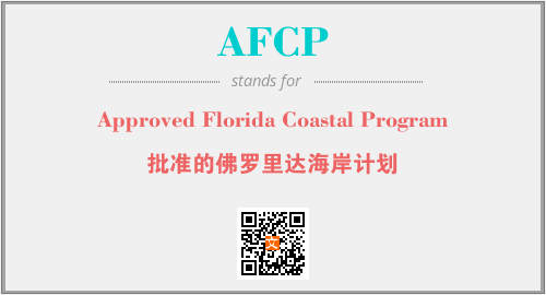 上述内容是“Approved Florida Coastal Program”作为“AFCP”的缩写,解释为“批准的佛罗里达海岸计划”时的信息,以及英文缩略词AFCP所代表的英文单词,其对应的中文拼音、详细解释以及在英文中的流行度和相关分类、应用领域及应用示例等。