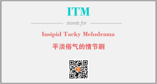 英文缩略词“ITM”经常作为“Insipid Tacky Melodrama”的英文缩写来使用,中文表示:“平淡俗气的情节剧”。本文将详细介绍英文缩写词ITM所代表英文单词,其对应的中文拼音、详细解释以及在英语中的流行度。此外,还有关于缩略词ITM的分类、应用领域及相关应用示例等。