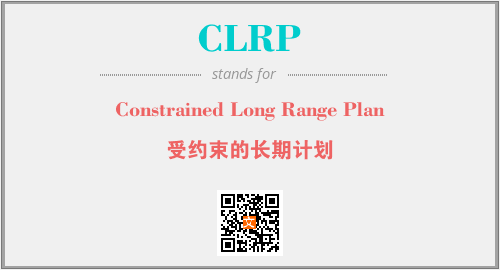 上述内容是“Constrained Long Range Plan”作为“CLRP”的缩写,解释为“受约束的长期计划”时的信息,以及英文缩略词CLRP所代表的英文单词,其对应的中文拼音、详细解释以及在英文中的流行度和相关分类、应用领域及应用示例等。