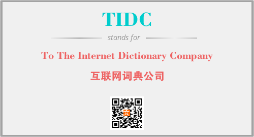 英文缩略词“TIDC”经常作为“To The Internet Dictionary Company”的英文缩写来使用,中文表示:“互联网词典公司”。本文将详细介绍英文缩写词TIDC所代表英文单词,其对应的中文拼音、详细解释以及在英语中的流行度。此外,还有关于缩略词TIDC的分类、应用领域及相关应用示例等。
