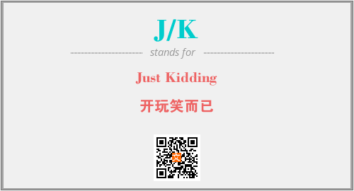英文缩略词“J/K”经常作为“Just Kidding”的英文缩写来使用,中文表示:“开玩笑而已”。本文将详细介绍英文缩写词J/K所代表英文单词,其对应的中文拼音、详细解释以及在英语中的流行度。此外,还有关于缩略词J/K的分类、应用领域及相关应用示例等。