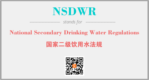 英文缩略词“NSDWR”经常作为“National Secondary Drinking Water Regulations”的英文缩写来使用,中文表示:“国家二级饮用水法规”。本文将详细介绍英文缩写词NSDWR所代表英文单词,其对应的中文拼音、详细解释以及在英语中的流行度。此外,还有关于缩略词NSDWR的分类、应用领域及相关应用示例等。
