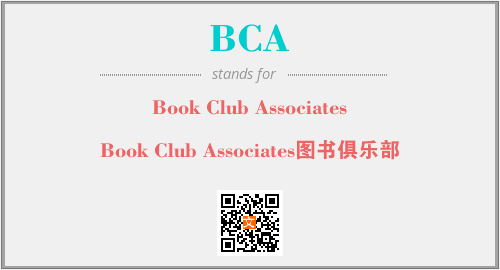 以上为Book Club Associates英文缩略词BCA的中文解释,以及该英文缩写在英语的流行度、分类和应用领域方面的信息。