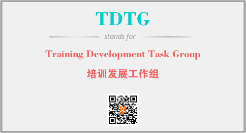 英文缩略词“TDTG”经常作为“Training Development Task Group”的英文缩写来使用,中文表示:“培训发展工作组”。本文将详细介绍英文缩写词TDTG所代表英文单词,其对应的中文拼音、详细解释以及在英语中的流行度。此外,还有关于缩略词TDTG的分类、应用领域及相关应用示例等。