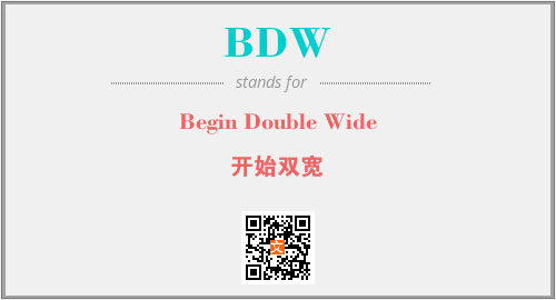 英文缩略词“BDW”经常作为“Begin Double Wide”的英文缩写来使用,中文表示:“开始双宽”。本文将详细介绍英文缩写词BDW所代表英文单词,其对应的中文拼音、详细解释以及在英语中的流行度。此外,还有关于缩略词BDW的分类、应用领域及相关应用示例等。
