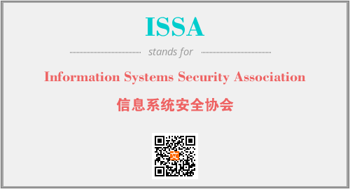 英文缩略词“ISSA”经常作为“Information Systems Security Association”的英文缩写来使用,中文表示:“信息系统安全协会”。本文将详细介绍英文缩写词ISSA所代表英文单词,其对应的中文拼音、详细解释以及在英语中的流行度。此外,还有关于缩略词ISSA的分类、应用领域及相关应用示例等。