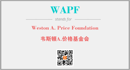 以上为Weston A. Price Foundation英文缩略词WAPF的中文解释,以及该英文缩写在英语的流行度、分类和应用领域方面的信息。