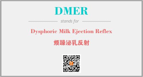 上述内容是“Dysphoric Milk Ejection Reflex”作为“DMER”的缩写,解释为“烦躁泌乳反射”时的信息,以及英文缩略词DMER所代表的英文单词,其对应的中文拼音、详细解释以及在英文中的流行度和相关分类、应用领域及应用示例等。