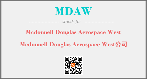 上述内容是“Mcdonnell Douglas Aerospace West”作为“MDAW”的缩写,解释为“Mcdonnell Douglas Aerospace West公司”时的信息,以及英文缩略词MDAW所代表的英文单词,其对应的中文拼音、详细解释以及在英文中的流行度和相关分类、应用领域及应用示例等。