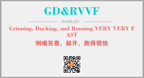 以上为Grinning, Ducking, and Running VERY VERY FAST英文缩略词GD&RVVF的中文解释,以及该英文缩写在英语的流行度、分类和应用领域方面的信息。
