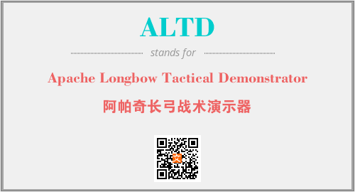上述内容是“Apache Longbow Tactical Demonstrator”作为“ALTD”的缩写,解释为“阿帕奇长弓战术演示器”时的信息,以及英文缩略词ALTD所代表的英文单词,其对应的中文拼音、详细解释以及在英文中的流行度和相关分类、应用领域及应用示例等。
