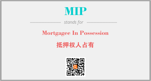 英文缩略词“MIP”经常作为“Mortgagee In Possession”的英文缩写来使用,中文表示:“抵押权人占有”。本文将详细介绍英文缩写词MIP所代表英文单词,其对应的中文拼音、详细解释以及在英语中的流行度。此外,还有关于缩略词MIP的分类、应用领域及相关应用示例等。