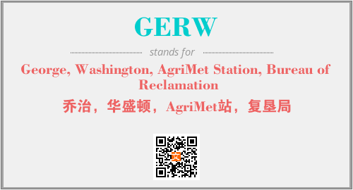 上述内容是“George, Washington, AgriMet Station, Bureau of Reclamation”作为“GERW”的缩写,解释为“乔治,华盛顿,AgriMet站,复垦局”时的信息,以及英文缩略词GERW所代表的英文单词,其对应的中文拼音、详细解释以及在英文中的流行度和相关分类、应用领域及应用示例等。