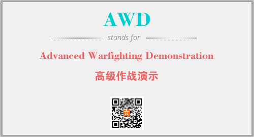 英文缩略词“AWD”经常作为“Advanced Warfighting Demonstration”的英文缩写来使用,中文表示:“高级作战演示”。本文将详细介绍英文缩写词AWD所代表英文单词,其对应的中文拼音、详细解释以及在英语中的流行度。此外,还有关于缩略词AWD的分类、应用领域及相关应用示例等。