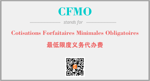 上述内容是“Cotisations Forfaitaires Minimales Obligatoires”作为“CFMO”的缩写,解释为“最低限度义务代办费”时的信息,以及英文缩略词CFMO所代表的英文单词,其对应的中文拼音、详细解释以及在英文中的流行度和相关分类、应用领域及应用示例等。