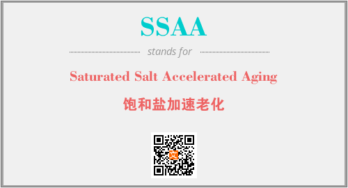 上述内容是“Saturated Salt Accelerated Aging”作为“SSAA”的缩写,解释为“饱和盐加速老化”时的信息,以及英文缩略词SSAA所代表的英文单词,其对应的中文拼音、详细解释以及在英文中的流行度和相关分类、应用领域及应用示例等。