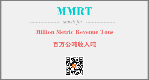 英文缩略词“MMRT”经常作为“Million Metric Revenue Tons”的英文缩写来使用,中文表示:“百万公吨收入吨”。本文将详细介绍英文缩写词MMRT所代表英文单词,其对应的中文拼音、详细解释以及在英语中的流行度。此外,还有关于缩略词MMRT的分类、应用领域及相关应用示例等。