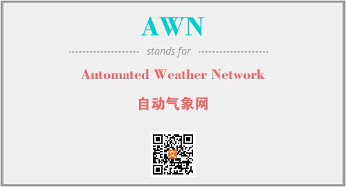 英文缩略词“AWN”经常作为“Automated Weather Network”的英文缩写来使用,中文表示:“自动气象网”。本文将详细介绍英文缩写词AWN所代表英文单词,其对应的中文拼音、详细解释以及在英语中的流行度。此外,还有关于缩略词AWN的分类、应用领域及相关应用示例等。