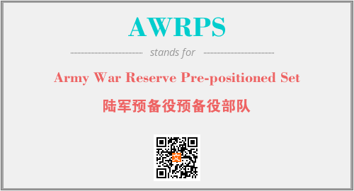 上述内容是“Army War Reserve Pre-positioned Set”作为“AWRPS”的缩写,解释为“陆军预备役预备役部队”时的信息,以及英文缩略词AWRPS所代表的英文单词,其对应的中文拼音、详细解释以及在英文中的流行度和相关分类、应用领域及应用示例等。