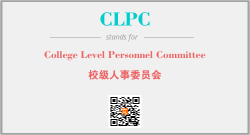 上述内容是“College Level Personnel Committee”作为“CLPC”的缩写,解释为“校级人事委员会”时的信息,以及英文缩略词CLPC所代表的英文单词,其对应的中文拼音、详细解释以及在英文中的流行度和相关分类、应用领域及应用示例等。