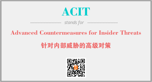 上述内容是“Advanced Countermeasures for Insider Threats”作为“ACIT”的缩写,解释为“针对内部威胁的高级对策”时的信息,以及英文缩略词ACIT所代表的英文单词,其对应的中文拼音、详细解释以及在英文中的流行度和相关分类、应用领域及应用示例等。