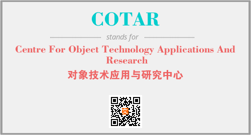 以上为Centre For Object Technology Applications And Research英文缩略词COTAR的中文解释,以及该英文缩写在英语的流行度、分类和应用领域方面的信息。